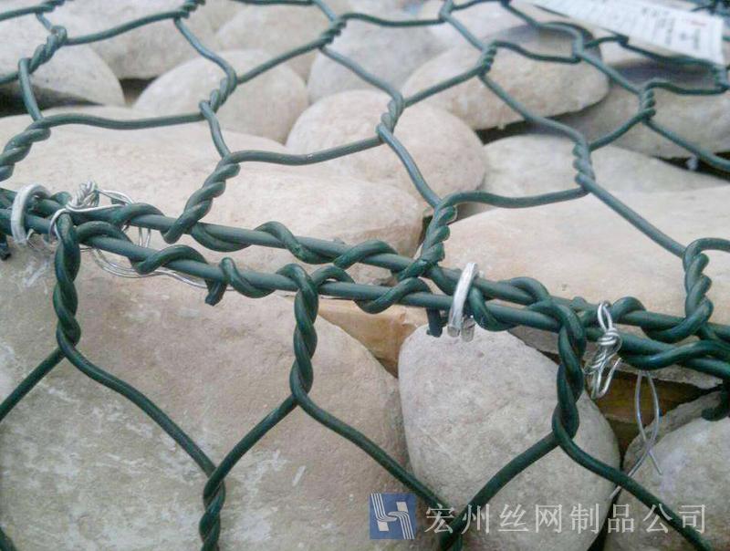 (3)鍍鋅鋼絲包塑:優(yōu)質低碳鋼絲,在鋼絲的表面包一層PVC保護層,再編織成各種規(guī)格的六角網(wǎng)。這層PVC保護層將會大大增加在高污染環(huán)境中的保護,并且通過不同顏色的選擇,使其能和周圍環(huán)境融合。