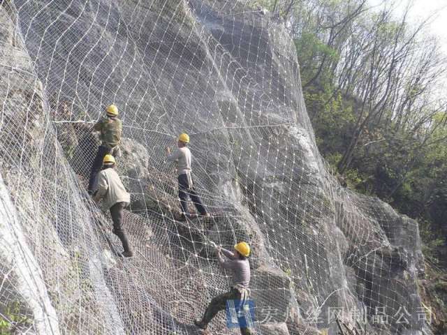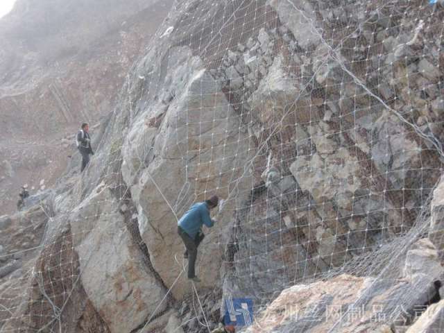 主動(dòng)防護(hù)系統(tǒng)是以鋼絲繩網(wǎng)為主的各類柔性網(wǎng)覆蓋包裹在所需防護(hù)斜坡或巖石上,以限制坡面巖石土體的風(fēng)化剝落或破壞以及為巖崩塌(加固作用),或?qū)⒙涫刂朴谝欢ǚ秶鷥?nèi)運(yùn)動(dòng)(圍護(hù)作用)。是柔性防護(hù)網(wǎng)的一種。